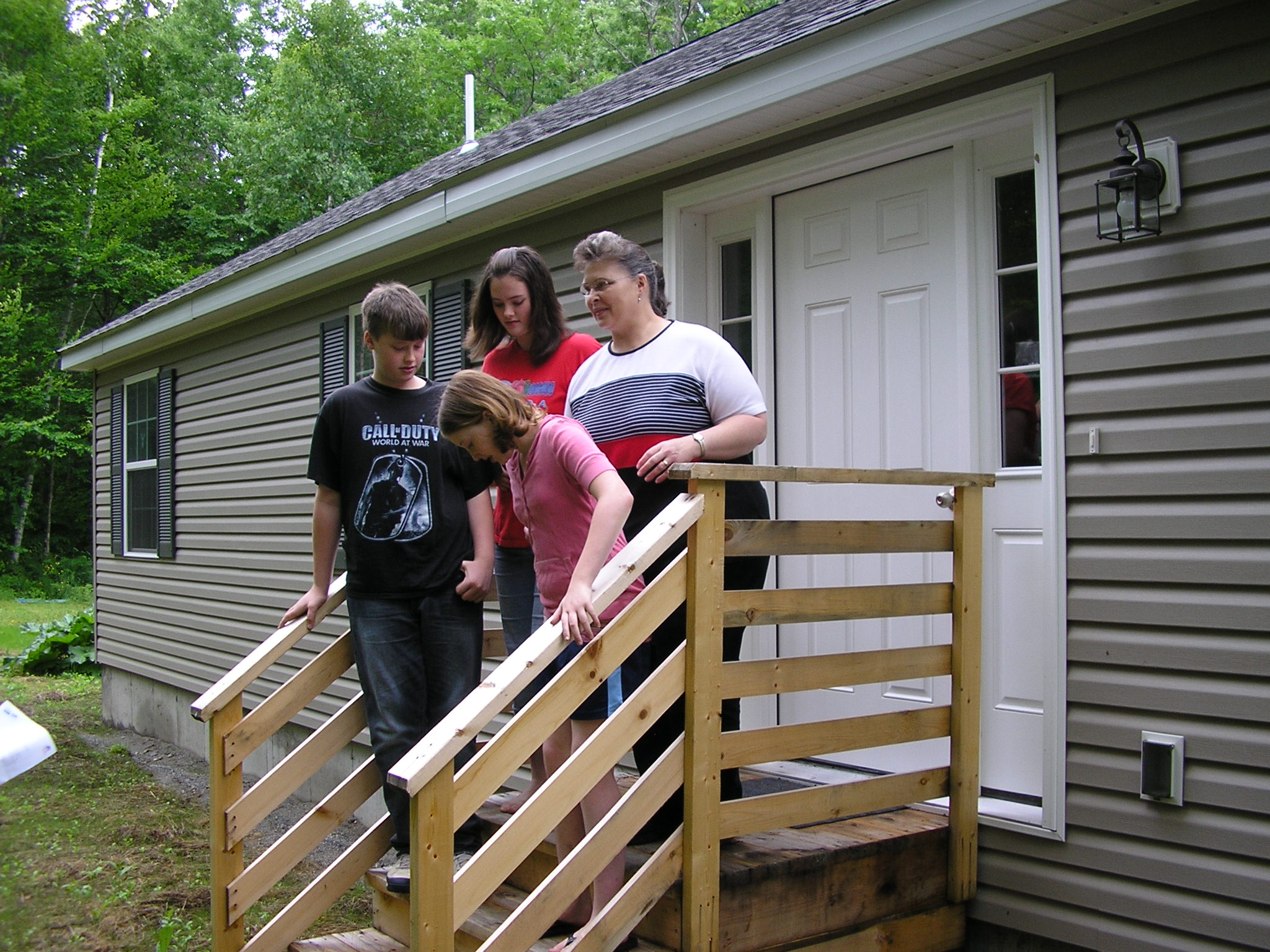 Kristen Phelps and her children Courtney, in back, Devin and Erica opened their new modular home on Osborne Road in Farmington Monday in celebration of the agencies that helped Phelps acquire the home through a home replacement program.