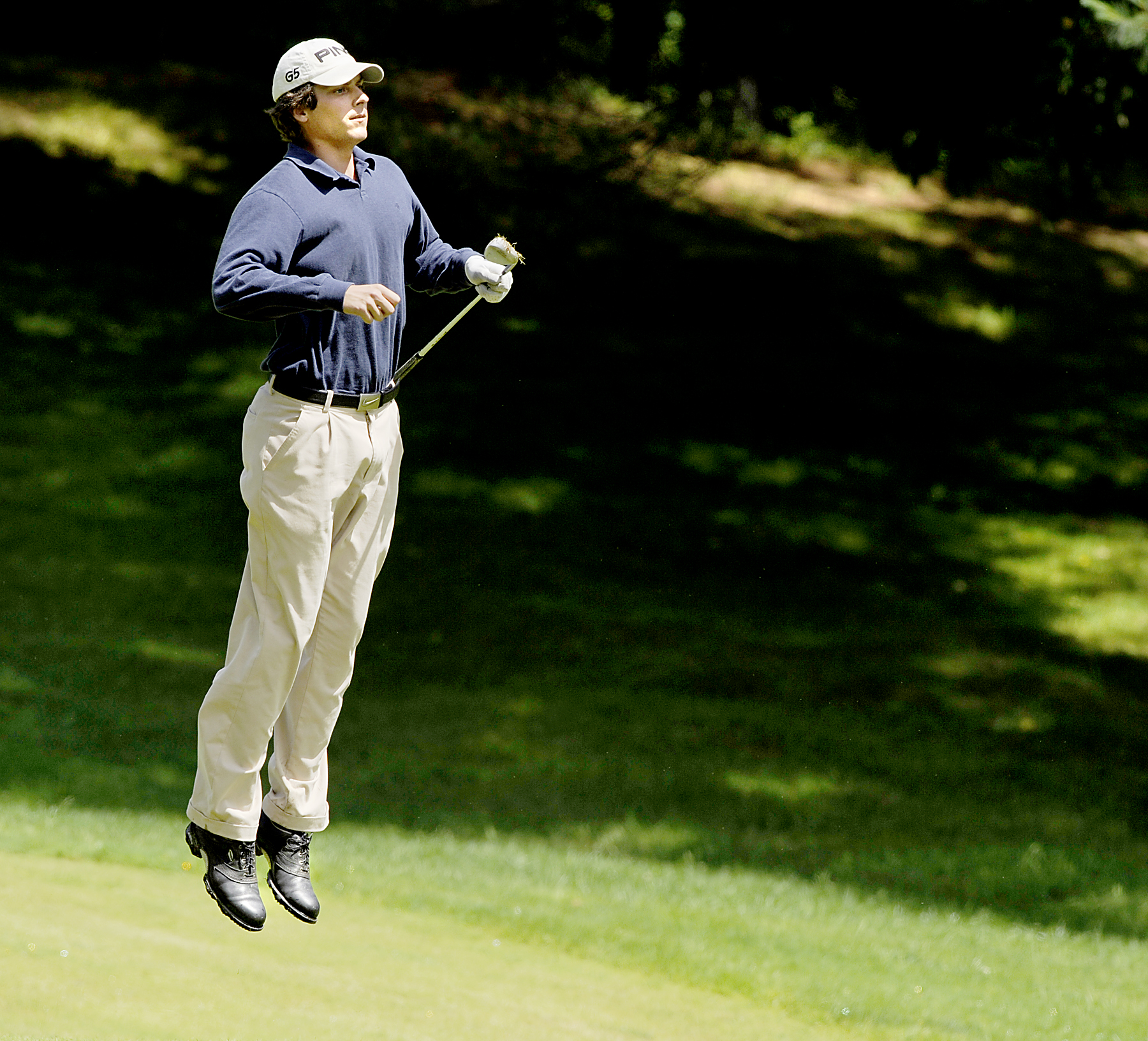 It could have been — and was less than a half inch from being two shots fewer. On the 15th hole, Speirs lofted an 8-iron shot from about 160 yards and watched his ball land, and rocket to the right.