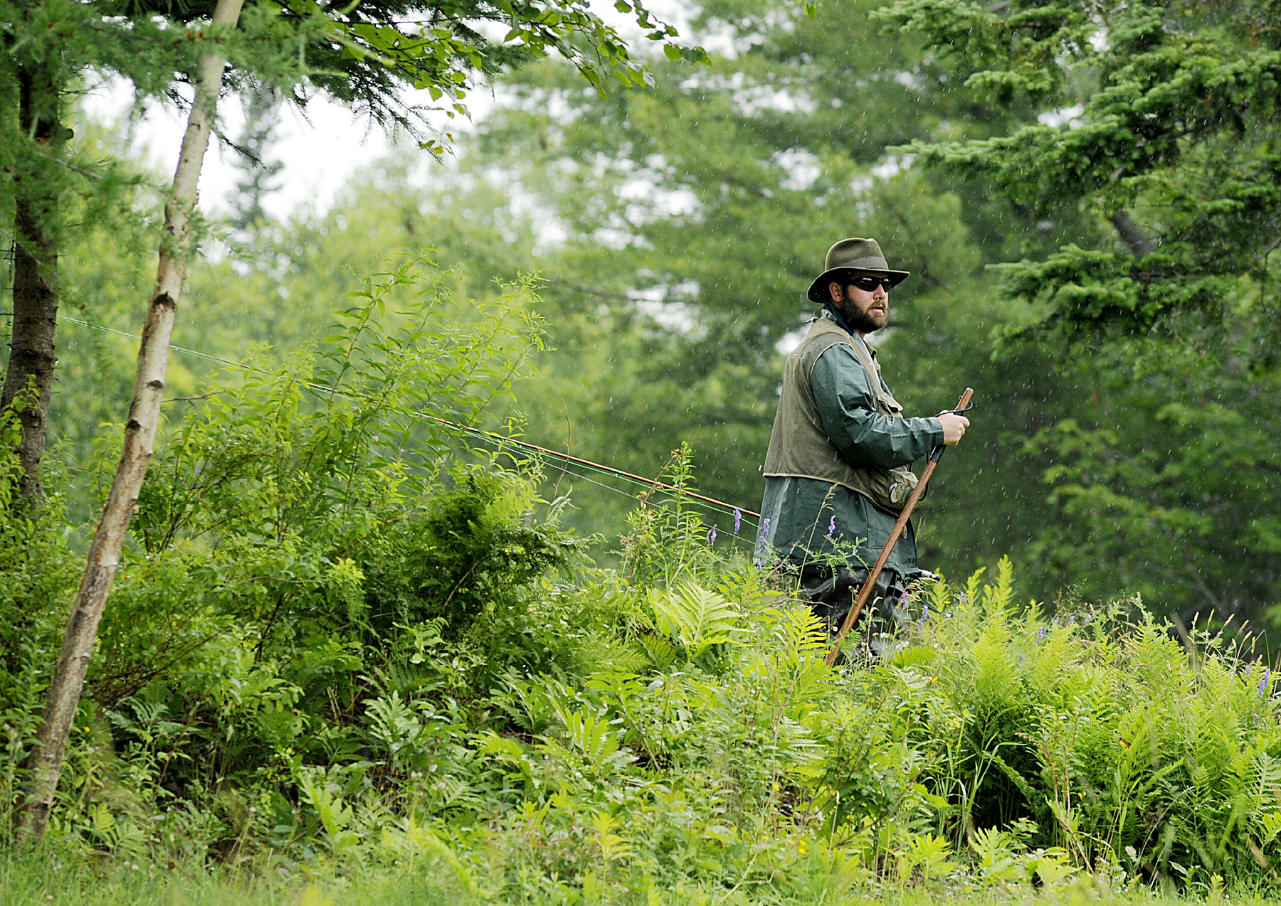Disabled veteran Dave Walker of Levant moves to a different spot in search of trout and salmon on the Rapid River below Lower Richardson Lake on Tuesday. “Getting out like this is just wonderful,” said the Iraq war veteran who suffers from a brain injury. Walker’s job in Iraq required him to go out looking for roadside bombs. “A lot of times the bombs would find us before we found them,” said Walker.