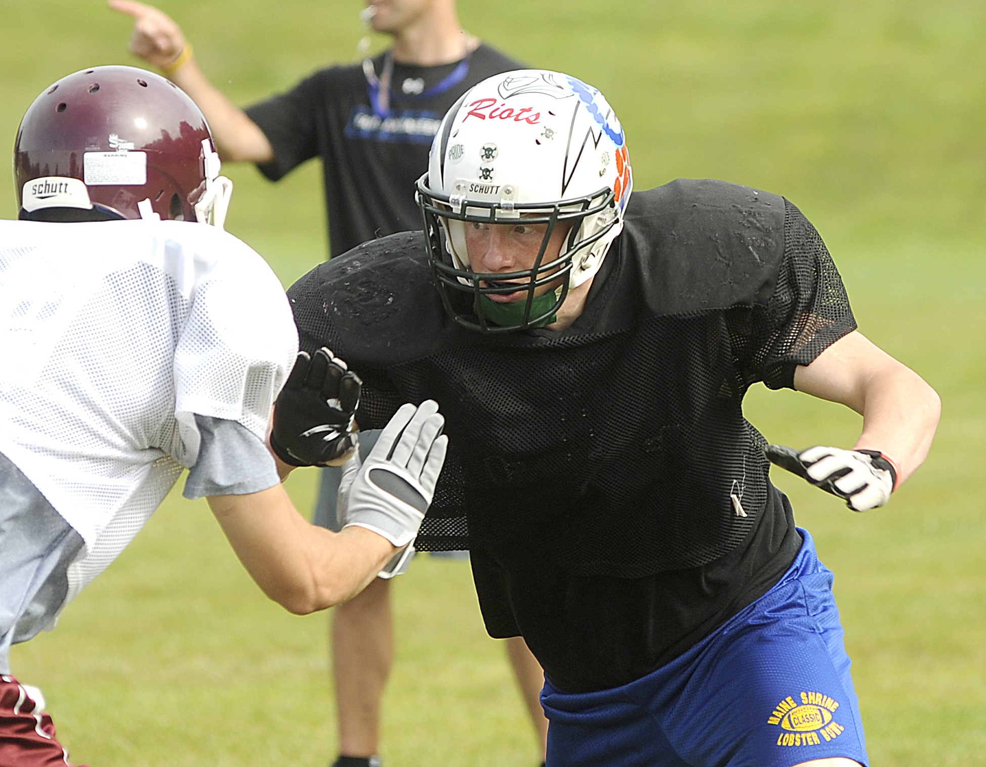 HEBRON — Even while they put the players through their paces during a week-long training camp, coaches and organizers of the Maine Shrine Lobster Bowl never let too much time pass without reminding them the real reason they are on the field.
