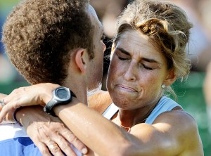All the bumping had nothing to do with Adere’s spill, who was clipped by a male runner a couple of miles into the race.