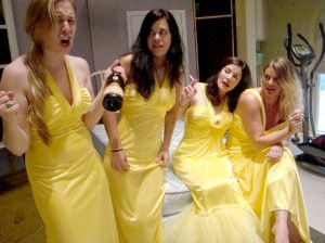 The bridesmaids have been forced to wear the same dresses picked by the bride to made her look gorgeous and them hideous.