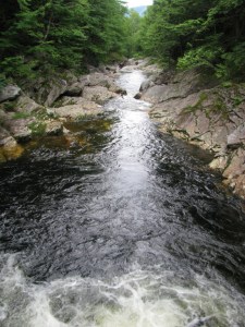 To get to Frenchman’s Hole you need to make your way to the Sunday River Ski Area access road. Shortly after you pass the brew pub take a right toward Jordan Bowl. After 1.1 miles you take a right onto a street that may have no sign, but is apparently known locally as “Twin Bridge Road.” After 3.1 miles the road turns to dirt. After another 1.2 miles you take a left across two single-lane bridges (hence the name). In just .1 mile you take another right. Another .6 miles will take you to the parking lot on the left, but you will see the stream on the right. It’s not easy and it’s not quick … but it’s worth it.