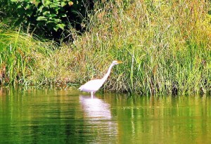 A white egret basks in the sun late Wednesday afternoon while looking for a meal along the canal bank in Rumford.