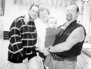 Four generations gathered recently. Pictured from left are Ricky S. Young Jr. of Auburn, father; Harriet Hawkins of Lisbon Falls, great-grandmother; and Dominick R. Young of Auburn, held by Ricky S. Young Sr. of Lisbon Falls, grandfather.