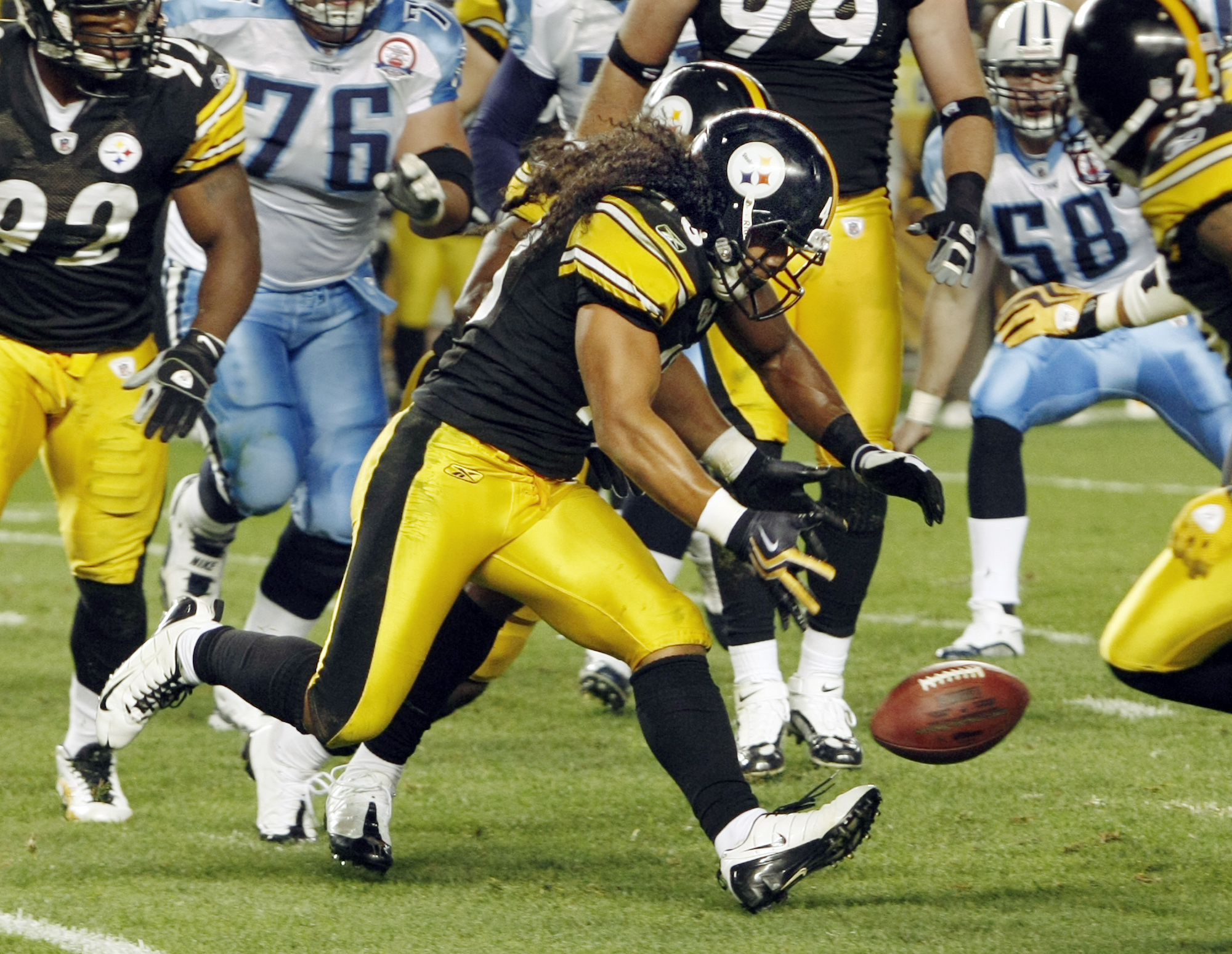 Polamalu was the best player on the field before he was hurt, making six tackles, a one-handed interception of a Kerry Collins pass — with his left hand — and dropping Chris Johnson for a 2-yard loss on a third-down blitz, all in less than a half. Polamalu’s repeated big plays helped keep the game close even as the Steelers were rushing for only 36 yards on 23 carries.