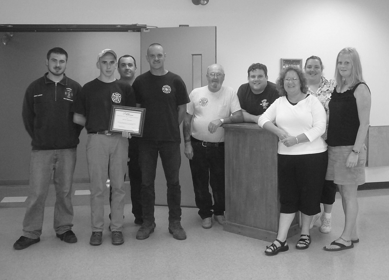 Paris Fire Department members Jason Larson, Allen Larson, Tim Clifton,