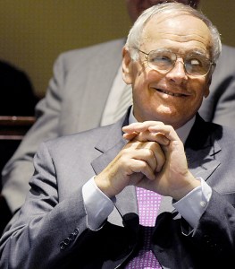 Justice Robert Clifford shares a laugh during a gathering for his retirement at Androscoggin Superior Court in Auburn on Thursday. The former Lewiston Mayor, Maine Supreme Court Justice Robert Clifford served thirty years from the bench.
