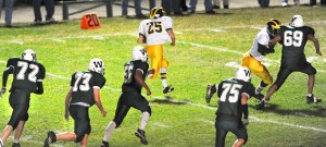 Halfback Jeff Ryder took a pitch from quarterback Shawn Whiting and raced 72 yards down the right sideline on the first offensive play of the game for the Andies. He would finish with 171 yards on the ground and two touchdowns. Teammate Chandler White turned in an even bigger night, racking up 204 yards rushing to go along with 60 yards receiving. He also scored twice.