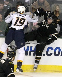 Steve Mason, the winner of last season’s Calder Trophy as the NHL rookie of the year, finished with 32 saves. R.J. Umberger added a short-handed goal for Columbus, and Andrew Brunette scored for Minnesota.