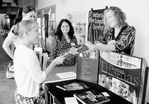 A fall transfer fair was held recently at Central Maine Community College in Auburn. Representatives from four-year colleges and universities in Maine participated, providing information and advising to CMCC students interested in pursuing bachelor’s degrees. Morgan Demmons, a CMCC student, is pictured above receiving information from Angela Stinchfield, transfer coordinator for undergraduate admissions at Thomas College. Looking on at left is student mentor Christine Wakefield and Elizabeth Oken, director of transfer advising at CMCC. Additional transfer fairs and interview sessions are scheduled throughout the course of the academic year.