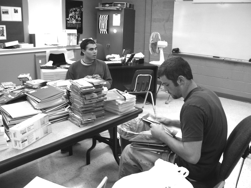 Packages of wide-ruled paper were given to the middle schools and packages of college-ruled paper were donated to the high schools. Three-ring binders were given to the high schools and the middle schools, five regular and five view binders were given to each of those schools. Spiral notebooks were given to all schools.