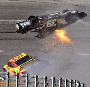 But after Carl Edwards’ airborne April crash into the frontstretch fence, NASCAR has felt the pressure to cut down on the dangerous bumping and blocking that usually triggers the multi-car accidents known as “the Big One.” Officials warned at the start of the weekend that they didn’t want to see drivers shoving each other around the speedway, and proved it by parking Michael Waltrip during a Friday practice when he didn’t back off Johnson’s rear bumper.