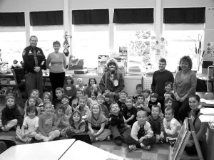 Jay Police Chief Larry White and Officer Robert Sanders, aka Sammy Swat, visited children in the Jay schools from preschool age to first grade. Jay Detective Richard Caton assisted. The officers talked to the children about Halloween safety. The program has been sponsored by the Police Department for the past 11 years.