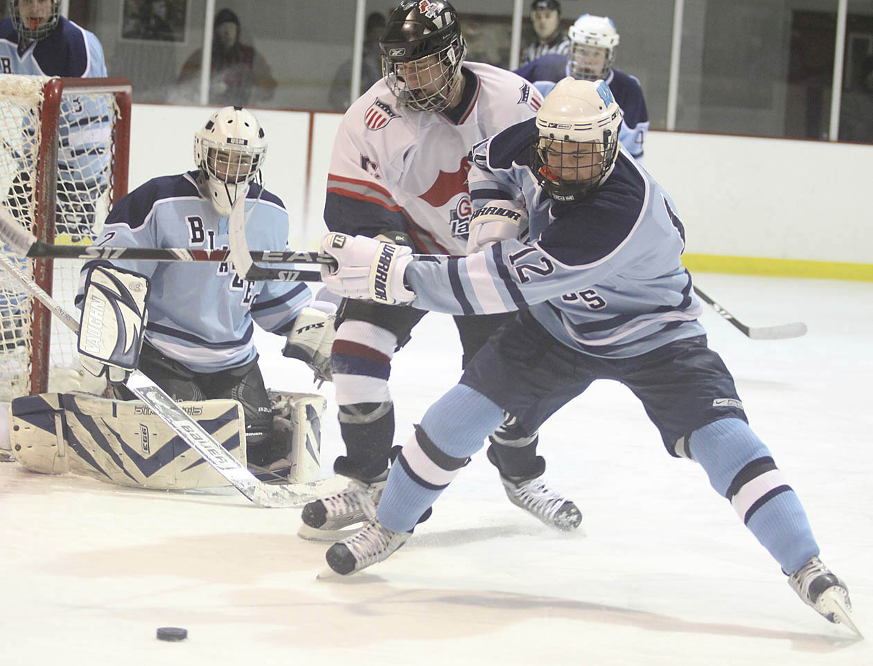 Knapp scored a pair of goals and narrowly missed a hat trick into an empty net late in the third to lift the Patriotic Knights to a 2-1 win over Westbrook in the first round of the Gipper’s Holiday Tournament at Ingersoll Arena.