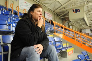 Donna Rousseau plays a game of pick-up hockey with other hockey moms at Ingersoll Arena on a recent Thursday night. “I hate it when my hubby is right,” laughed Rousseau. “He said I’d like it and I do!”