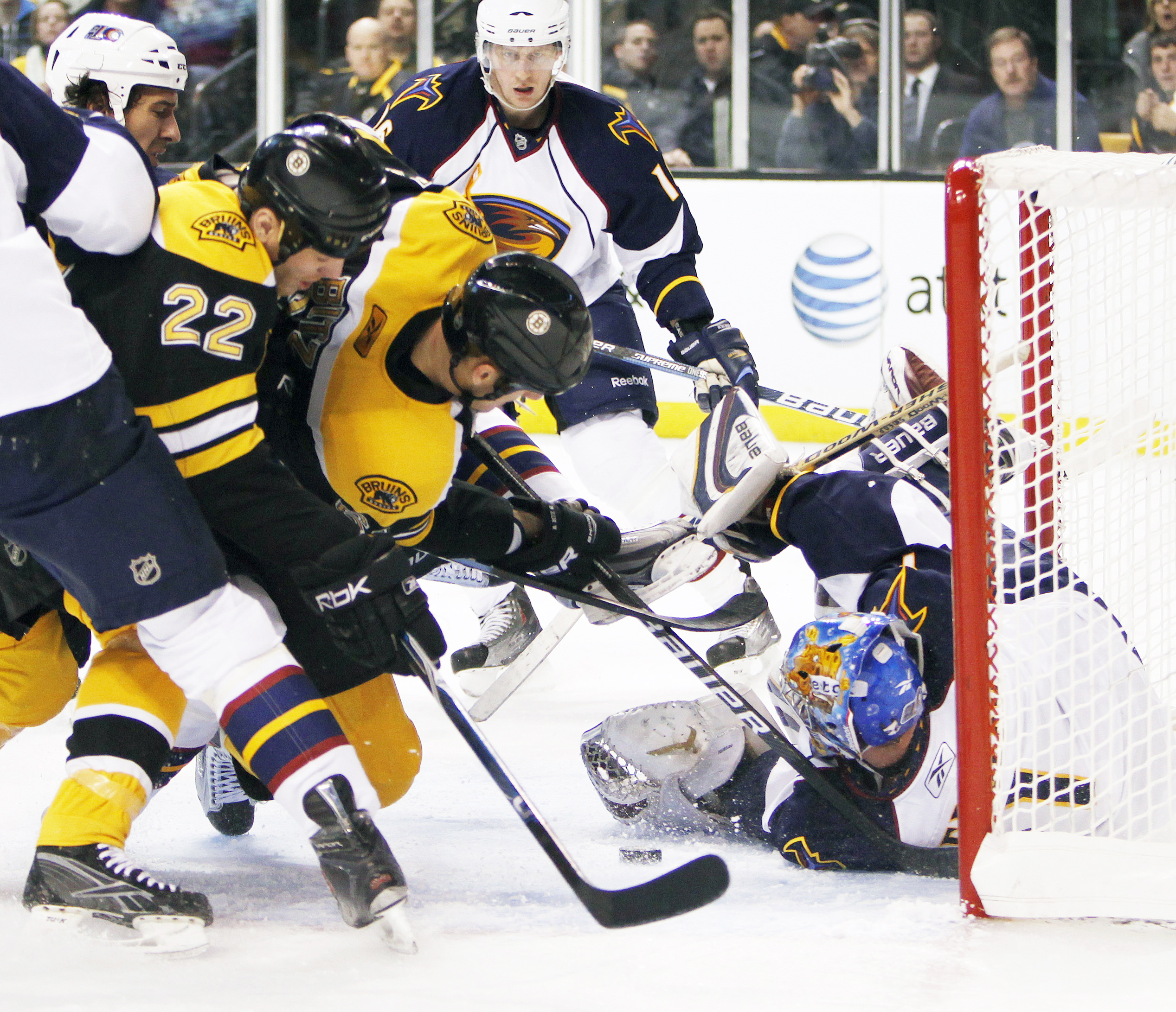NOTES: The Thrashers will be back in Boston next Wednesday night. … Bruins coach Claude Julien ran his 200th game behind the Boston bench. He’s 112-59-29. … Thornton had gone 14 straight games without a point, but has three assists in the last five. … Kovalchuk has five goals and seven assists during his streak. … Bruins left wing Milan Lucic, out since Nov. 25 with a high ankle sprain, is skating and hopes to play as early as the Jan. 1 Winter Classic at Fenway Park, if not soon after.