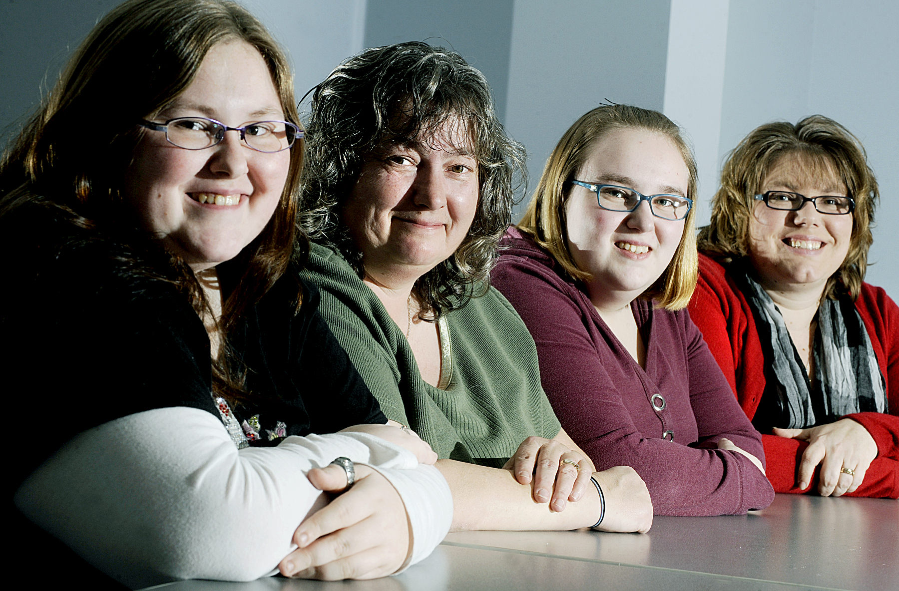 Tami Davis, second from left, of Livermore, was convinced by her three daughters to go back to school. From left are Samantha Davis, 19, Tami, Rebecka Tellier, 20, and Jennifer Bero, 37.