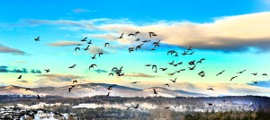 Crows and ducks take flight from Brigeen Farm on Upper Street in Turner Wednesday morning. Russ Dillingham/Sun Journal Crows and ducks take flight from Brigeen Farm on Upper Street in Turner Wednesday morning.