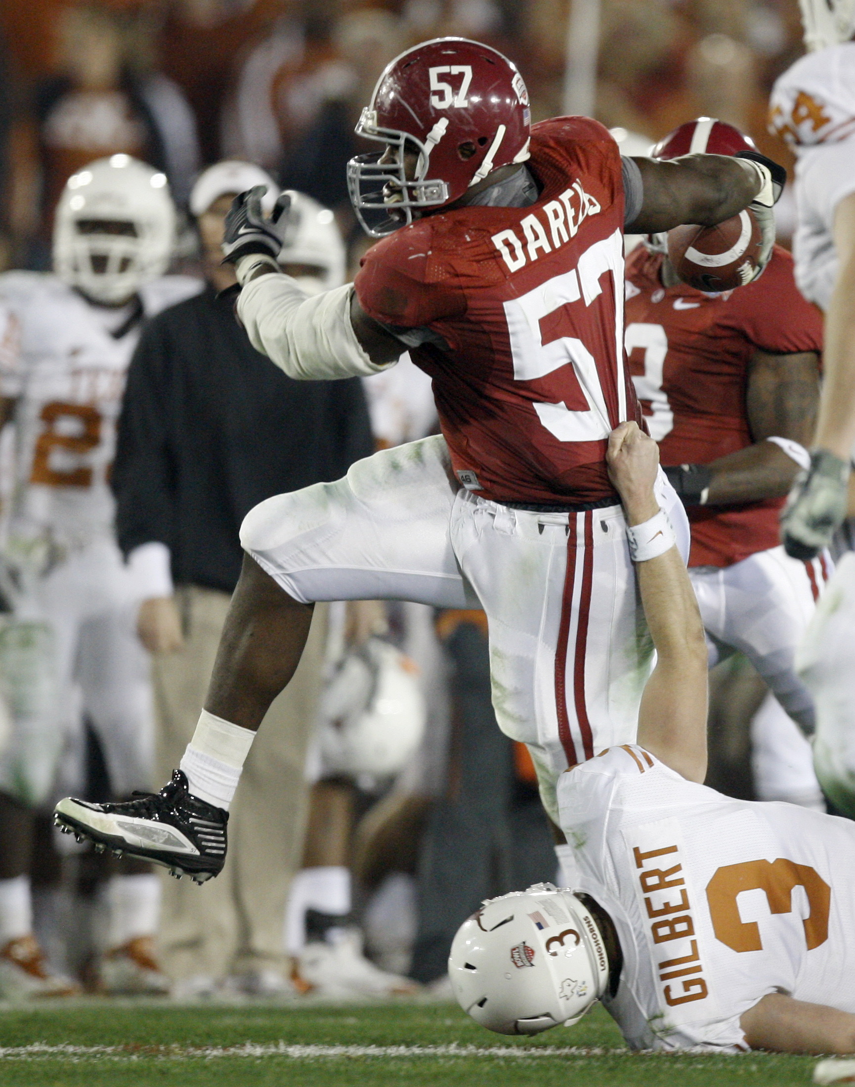 Anders forced a fumble on his blindside sack of Texas backup quarterback Garrett Gilbert with 3:02 left Thursday night to help the top-ranked Crimson Tide hold on for a 37-21 victory – a win that figured to be much easier when McCoy went out with a shoulder injury early in the first quarter.