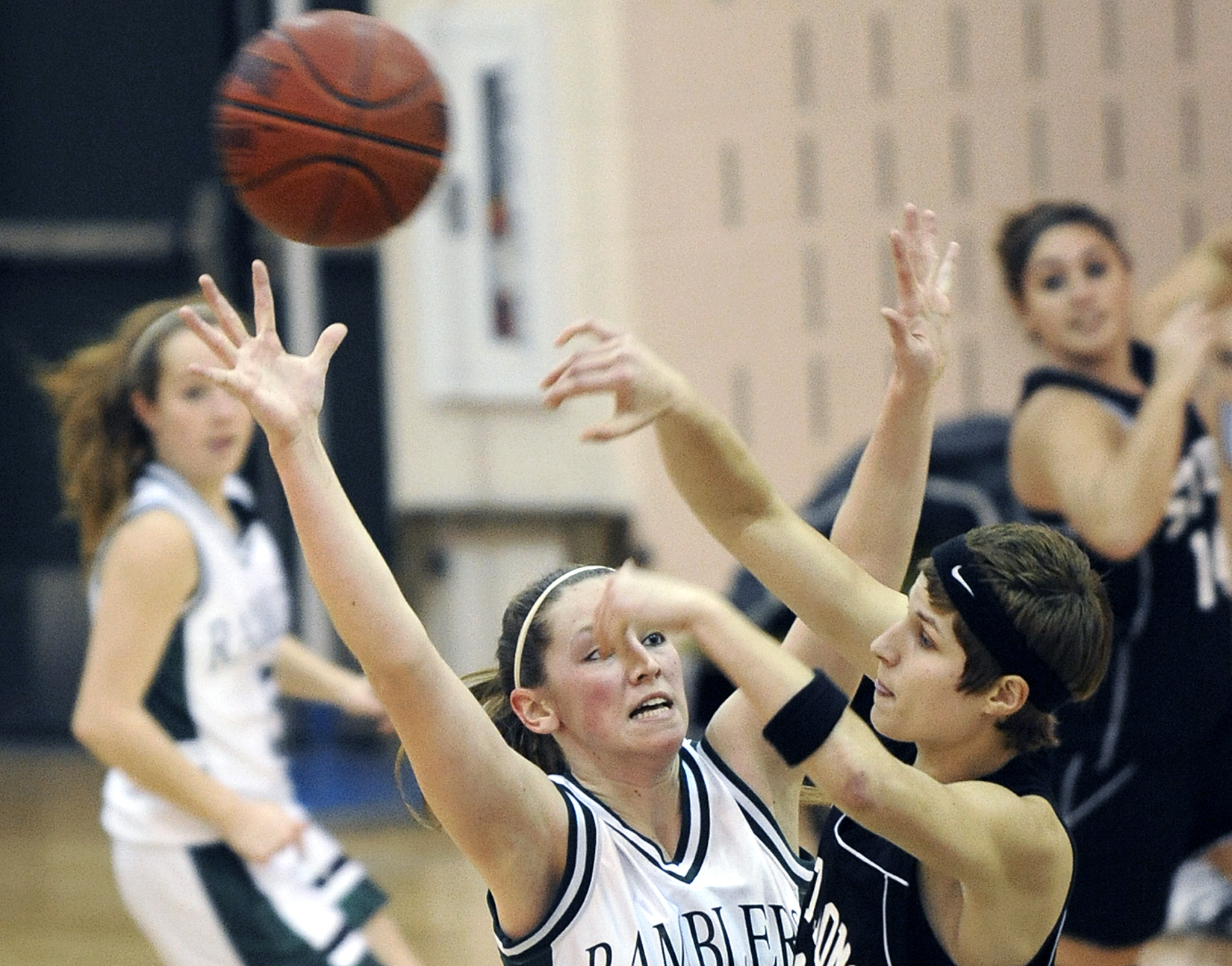 Ouellette was not the lone standout for the Ramblers, which needed the win to keep their Western C tourney hopes alive. Kelsey Nason added nine points, seven in the fourth quarter. Nikki Scott and Sarah Warner were tenacious defensively while Michelle Lough was outstanding shadowing St. Dom’s Allaina Murphy, who led the Saints with 28 points. The Ramblers also got offensive contributions from Alex Veilleux, Katie Michelsen and Jessica Scott.