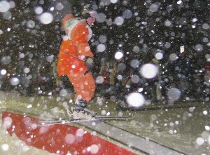 During practice runs from 4:30 to 6 p.m., skiers and snowboarders took turns zipping down the course and trying out their tricks. Eastbound traffic that wasn’t detoured onto side streets slowly drove past, drivers and passengers gawking at the spectacle.
