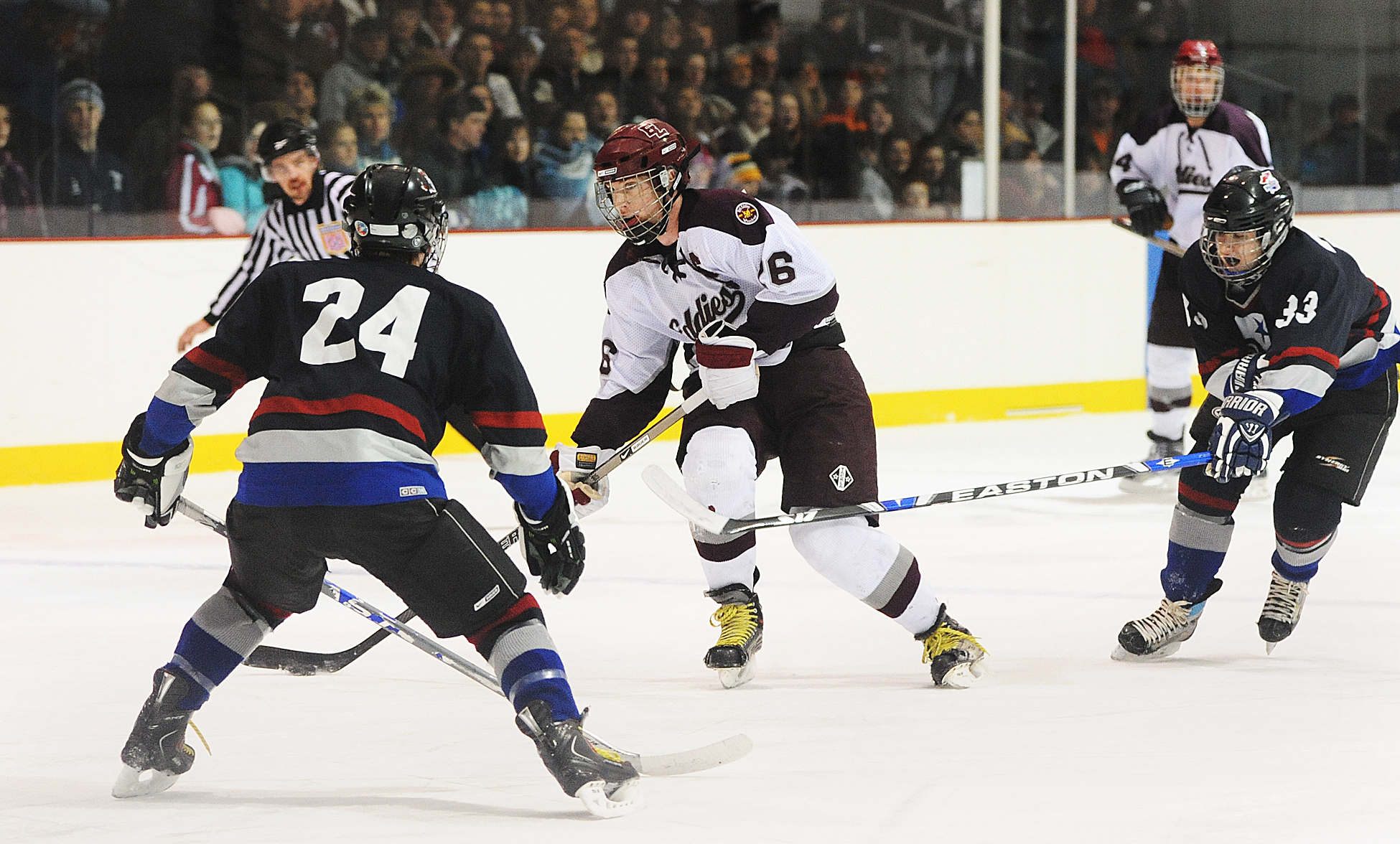 The Eddies exploded after a scoreless first period, taking advantage of rebounds and deflections to chalk up a 3-1 lead in the middle stanza.
