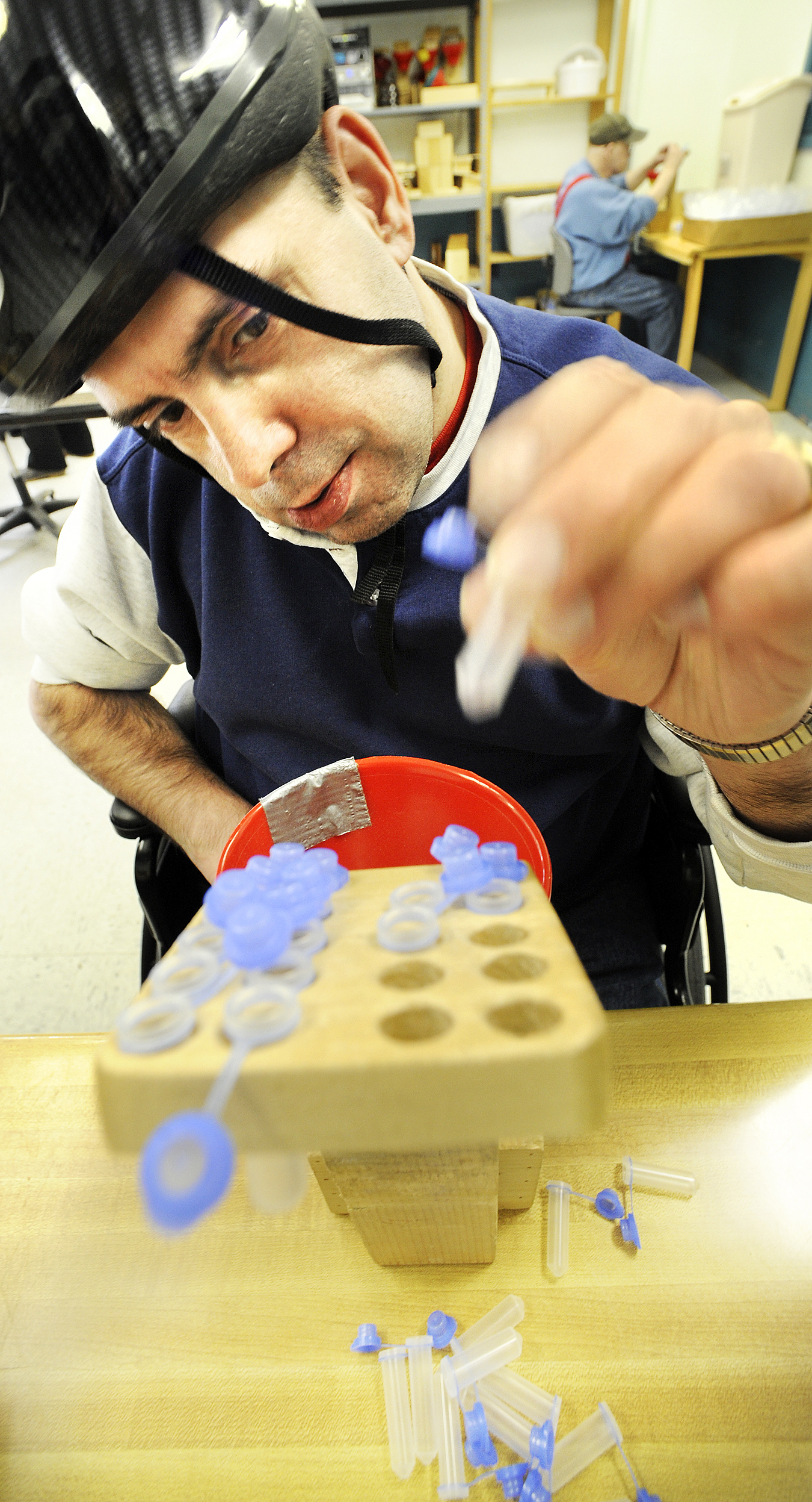 TURNER — On a recent weekday a dozen workers were busy inside the packaging room of the Nezinscot Guild. Rock ‘n’ roll music played on the radio while employees counted and packed test vials for IDEXX Laboratories.