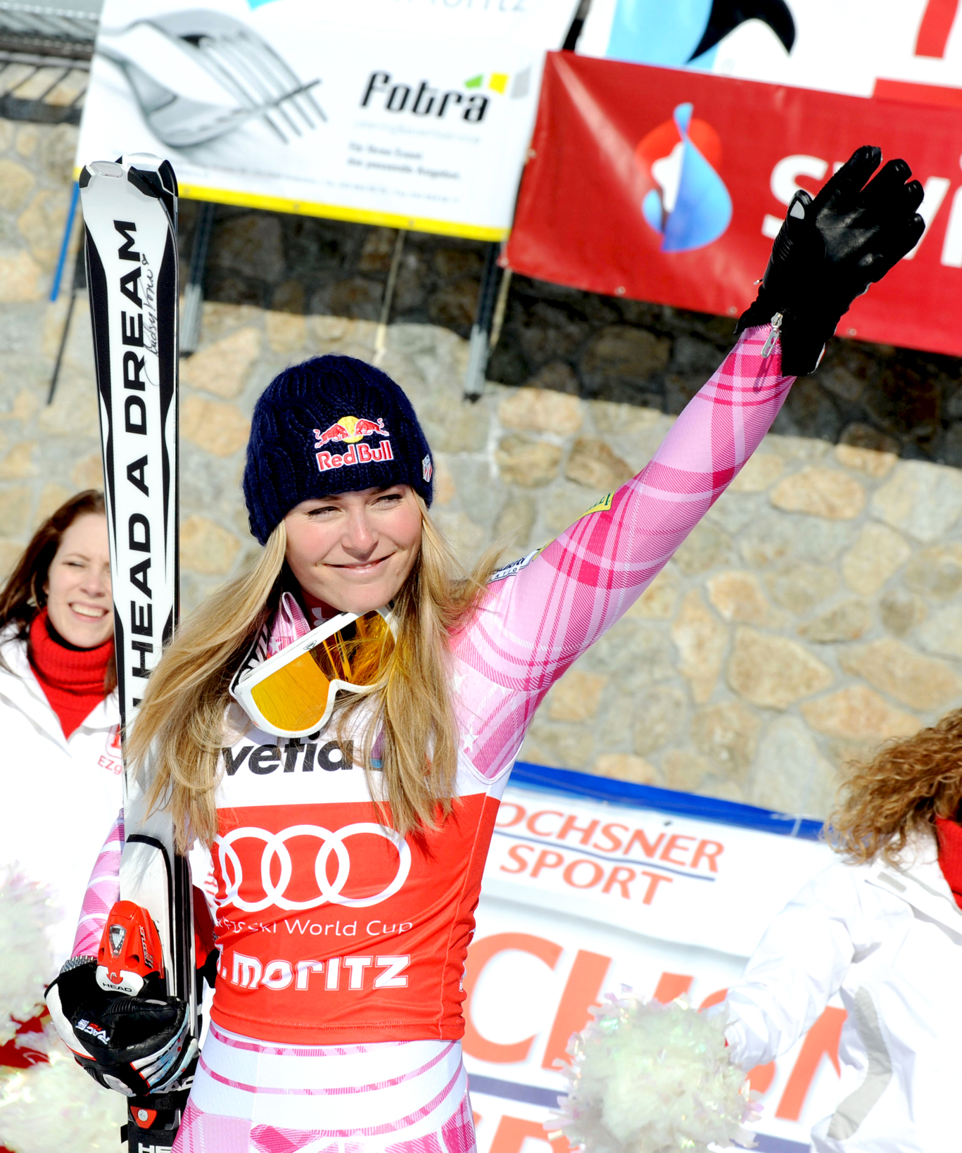 ST. MORITZ, Switzerland (AP) — Lindsey Vonn won a super-G race Sunday, clinching the discipline title in the final World Cup race before the Vancouver Olympics.