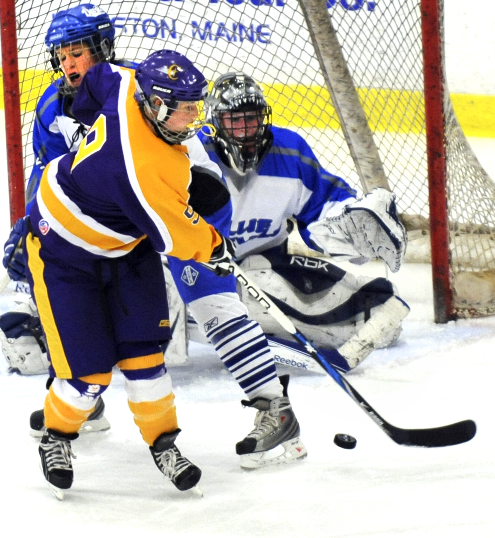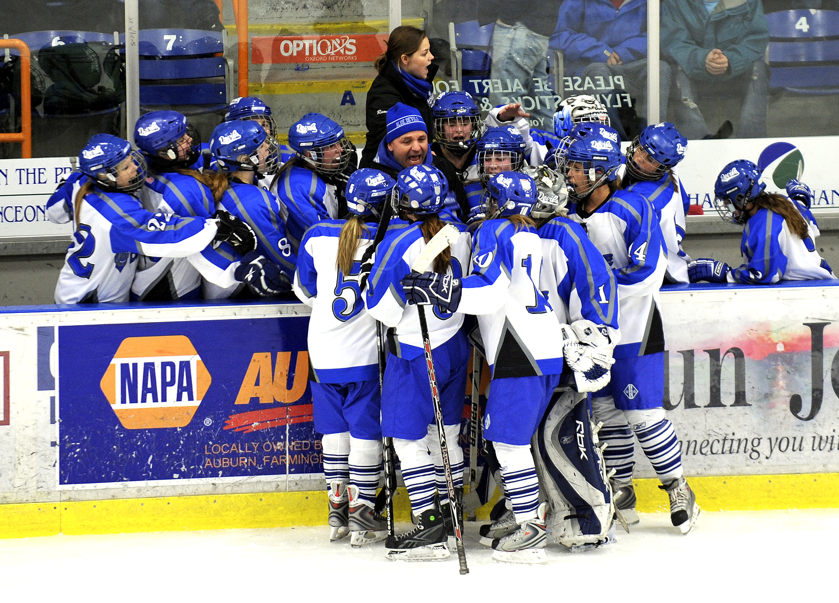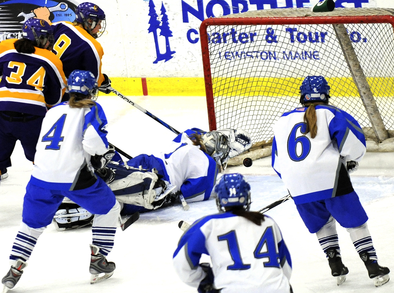 Alyssa Audet, befitting her title as team co-captain, broke the stalemate in typical tight-game fashion. She found a shin-high rebound on a third-chance attempt at the left post and batted the on-edge puck past Lewiston goalkeeper Sarah Turner to break the deadlock.
