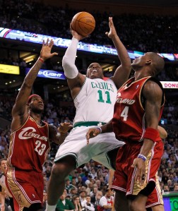 NOTES: Former Celtics forward Leon Powe made his season debut to a nice ovation in the final minute of the first half. He was a key reserve on the Celtics’ championship team, but tore the ACL in his left knee during last season’s playoffs and wasn’t re-signed. He was signed by the Cavs in August and made a surprising appearance on the court Thursday, because coach Mike Brown said before the game he didn’t have minutes for Powe right now. … O’Neal and Davis, former LSU players, chatted before the game in the Cleveland locker room. Davis informed O’Neal that the Tigers were no longer winless in the SEC, having beaten Arkansas on Wednesday. … The teams meet again in Cleveland on March 14 and the Cavaliers return to Boston on April 4.