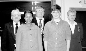 The Captain Frank W. Hulett VFW Post 1603 in Auburn held a awards banquet to honor the top winners in the Voice of Democracy and Patriot’s Pen contests. The first place winner of the Voice of Democracy Contest was Hanan Ahmed and the title of her script was: “Does America Still Have Heroes?” The first place winner of the Patriot’s Pen Contest was Coty Davis and the title of his script was: “When is the Right Time to Honor Our Military Heroes?” Pictured, from left, are Donald W. Linscott Jr., chairman; Hanan Ahmed; Keith Davis, post commander; Coty Davis; and Margaret Whirey, auxiliary president. For more information on the contests, contact Don Linscott at 333-2737 or [email protected].