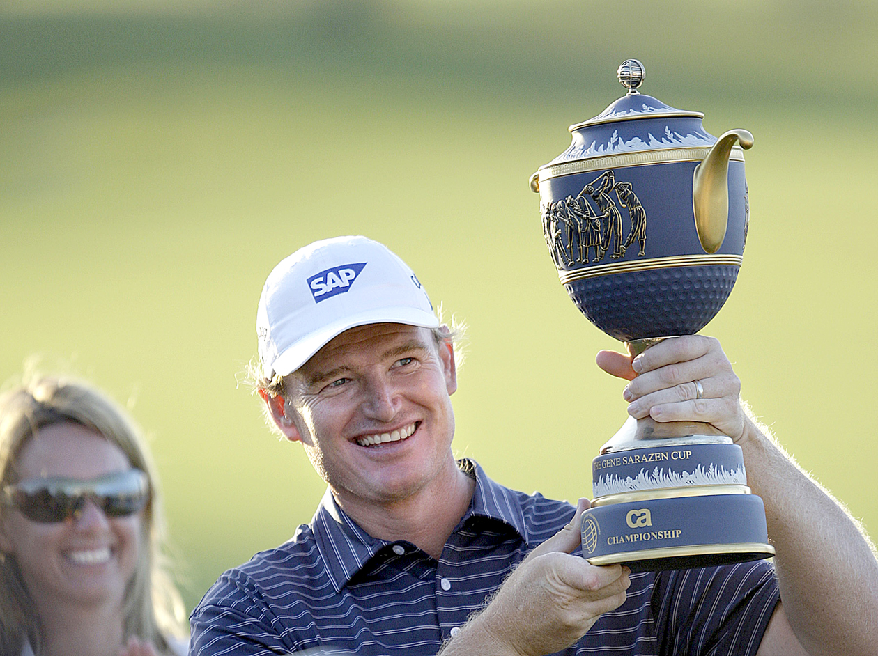 Padraig Harrington fell out of the with three straight bogeys on the back nine, closing with a 72 to tie for third at 11-under 277 along with Matt Kuchar (68) and Martin Kaymer of Germany, who had a 69 and moved up to No. 7 in the world. Defending champion Phil Mickelson, who was never in the mix, shot a 68 and tied for 14th.