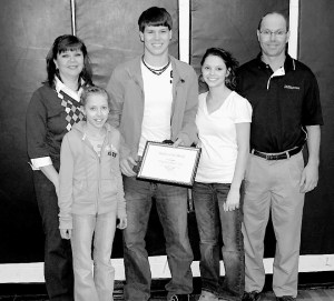 Eric Bolduc was chosen by the faculty to be the Dirigo High School Student of the Month for February. Pictured, from left, are Kim Bolduc, mother; sister Celine; Eric Bolduc; sister Natalie; and Mark Bolduc, father.