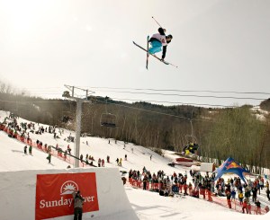 The host professional only ran the course twice Saturday, and didn’t take any runs during the actual competition. Instead, he sat back and helped judge the contest from the timing stand about midway down the course. Below him, hundreds of fans crowded the edge of the run to watch as the skiers defied gravity in run after run, dazzling onlookers with an array of flips, twists, grabs and big air.