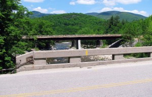Maine Department of Transportation’s new $2.5 million Maine Department of Transportation bridge over the Wild River in Gilead can be seen beyond the current Route 2 bridge in the foreground and just in front of the Pan Am Railways trestle over the river.
