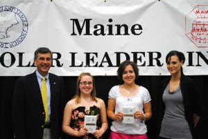 Emily Fournier and Megan Pare, eighth-grade students at Lewiston Middle School, were honored as Middle Level Scholar Leaders at a banquet held on May 20 at the Augusta Civic Center. The criteria for the award includes demonstrating academic initiative and scholarship, providing service to classmates and school, exemplifying positive attitudes and demonstrating leadership in the classroom and school activities. Nearly 360 students, educators and parents attended the banquet. Pictured at the banquet, from left are teacher Mike Courchesne, Pare, Fournier and teacher Kate Friesland.