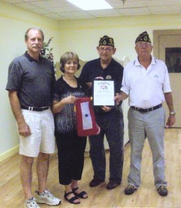 Turner Memorial Post 111 recently presented a Blue Star Banner to Steven and Therese Michaud of Turner in honor of their son Jeff’s service in Iraq. From left are Steven Michaud; Therese Michaud; Ron Hiscock, commander; and Ed Lepage, adjutant. The honor was first bestowed in 1917 and has been awarded ever since to families with sons and daughters serving in a combat area.
