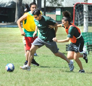 While Hamm interacted easily with a multi-cultural, revolving door of children, sharing the skills that won her Olympic and World Cup gold medals, her husband stood watch, wearing sunglasses and a perpetual smile. When he wasn’t busy tending the couple’s twin girls, Grace and Ava, Garciaparra occasionally interjected himself into the games.
