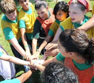 While half the group left the 10 a.m. opening assembly to spend time with the athletes, an equal number retreated to classrooms for their two-hour daily “dialogue” session. It is an often painful process at which the campers address the fear and prejudices they brought with them.