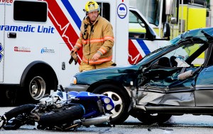 “The motorcycle was coming down and smacked the driver’s side,” Roy said. “It was a big bang. People ran over to see if he was OK. The ambulance got there quickly.”