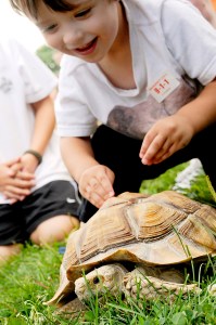 Nate Griffin, 2, of Lewiston gives chase to a African spur thigh tortoise at Marcotte Park during Lewiston’s annual “National Night Out” on Tuesday. Hot dogs, fire truck visits and exotic animals from Mr. Drew & His Animals Too were all part of the evenings activities. The Lewiston Police Department, the Police Athletic League and the Lewiston Department of Recreation sponsored the Lewiston event.