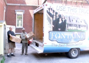 As the SHAREcenter continues to look for its new ground floor location, they prepare to move the first shipment of inventory to the new warehouse space that was donated by a community member. Dan and Ahmed, participants in the National ABLE program, help to load the moving truck, the use of which also was donated. The SHAREcenter will once again open its doors on Tuesday, Aug. 17, for members to begin shopping among all the inventory that is donated each year. The SHAREcenter will remain at its current location in the lower level of the Great Falls Art Center on Academy street in Auburn while it continues to seek donated space for a new home. Anyone who has space in the Auburn region who would like to help the organization continue or any school or nonprofit that would like a membership may call the SHAREcenter at 795-0972.