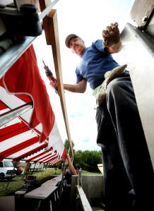 If the forecasts hold, the festival plans to launch at least 28 balloons in all. Besides the farm tent, a specialty balloon shaped like a Jack-in-the-box is also scheduled to take flight above Lewiston-Auburn. The two specialty balloons were sponsored by Harvest Hill Farms and Global Metal Fabrication, LLC.