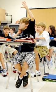 During a morning mass, students prayed and sang “Ave Maria” and “My God is an Awesome God.” A student assembly followed. Principal Donald Fournier welcomed the 322 students. The enrollment is up from last year’s 276.