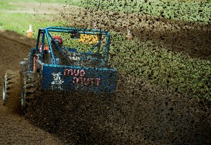 Cecil Phillips of Avon lets the mud fly during the Autumn Mud Classic at Barnyard All Terrain in Livermore on Sunday.