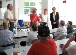 Democratic delegates visited residents at Blake Street Towers in Lewiston on Aug. 11. Present were, standing from left, Rep. Michel Lajoie, Rep. Peggy Rotundo, Sen. Margaret Craven and gubernatorial candidate Libby Mitchell.