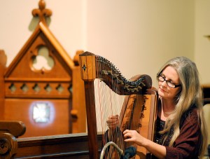 Kristin Tescher of Camden plays the harp during the yuletide harp concert at St. Michael’s Church in Auburn on Sunday. Tescher and Julia Lane performed along with members of the Maine Harp Circle, a group of harpist from Southern Maine who started playing together in 2003. “This is our first time playing for the public,” Melanie Lee of Auburn said. Lane and Tescher’s next performance will be at the Winter Street Church in Bath on Dec. 5. at 3 p.m. The Maine Harp Circle meets the first Sunday of each month at St. Michael’s on Pleasant Street.