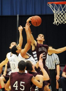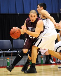 UMA switched from zone to man-to-man to counter CMCC shooters Curtis Miller and Nick Hinkley after the opening rush.