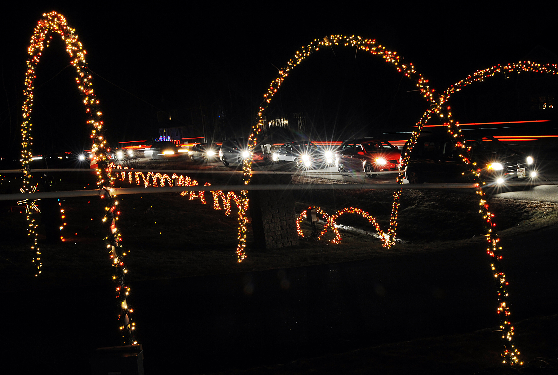 Cars drive slowly as they pass the holiday light show on Vista Drive in Auburn on Saturday evening. After much debate at City Hall and bad weather delayed the show for weeks, the lights and music finally turned on Saturday.
